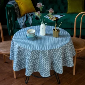 Round Cotton Linen Tablecloth – Plaid Home Decor Table Cover, 100-140 cm