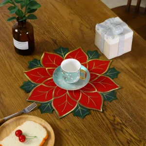 Red Snowflake Felt Drink Coaster – Christmas Table Decor & Cup Mat