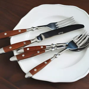 Stainless Steel Cutlery Set with Wood Grain Rivet Handle – 5-Piece Flatware Kit