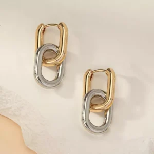 Geometric Gold Stainless Steel Hoop Earrings
