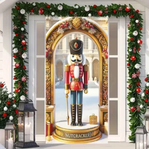 Christmas Nutcracker Door Banner – Festive Gingerbread Outdoor Decoration for Porch & Front Door