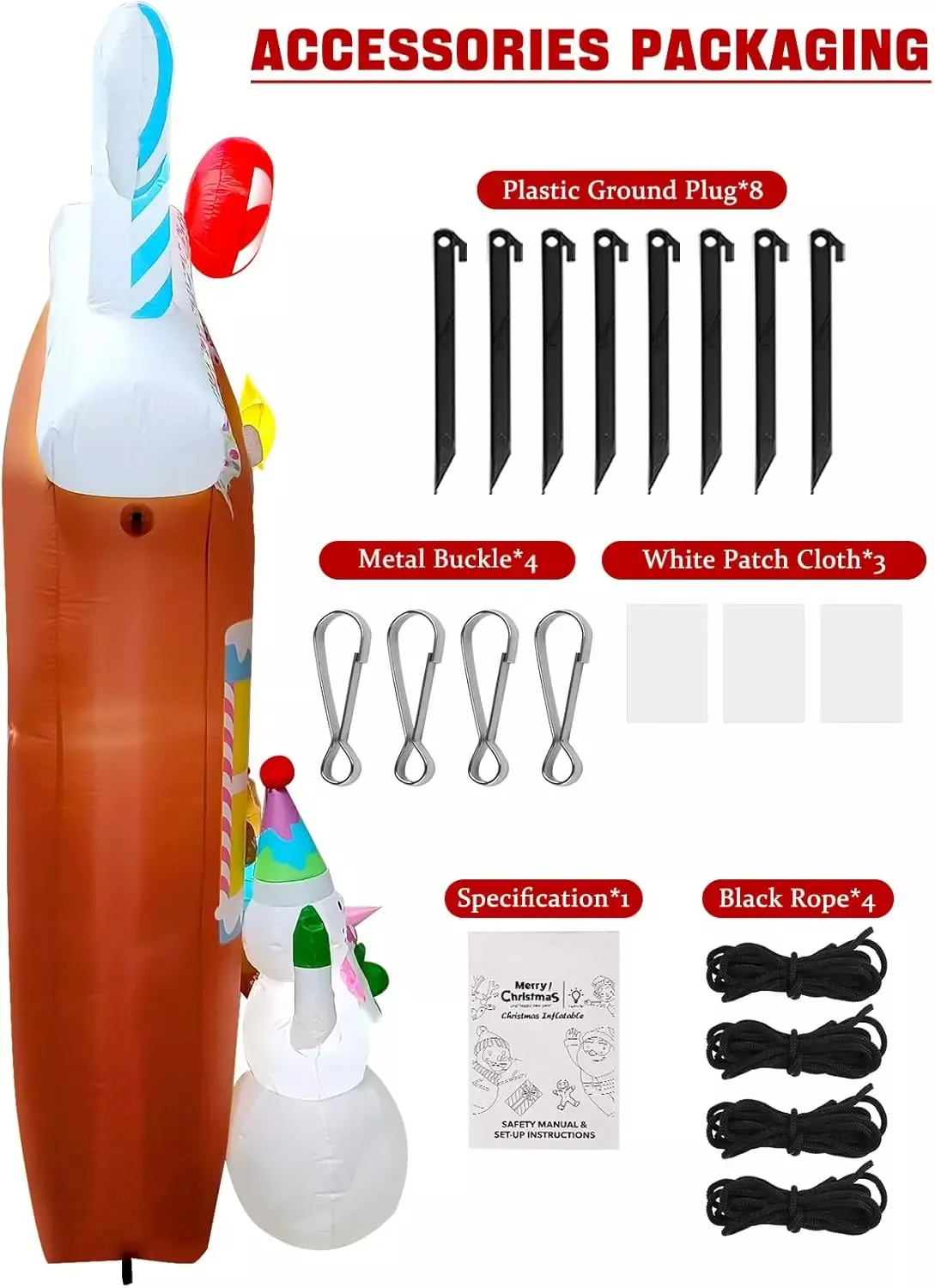 Bring your Christmas spirit to life effortlessly! Just plug in the inflatable, secure it with the provided stakes and sandbags, and watch it come alive in minutes. Its robust construction ensures that it stays perfectly balanced, while the built-in LEDs provide a captivating glow that’ll make your home the talk of the neighborhood. Whether it’s for welcoming holiday guests or adding cheer to your neighborhood, this gingerbread inflatable arch is a must-have decoration to complete your Christmas setup.