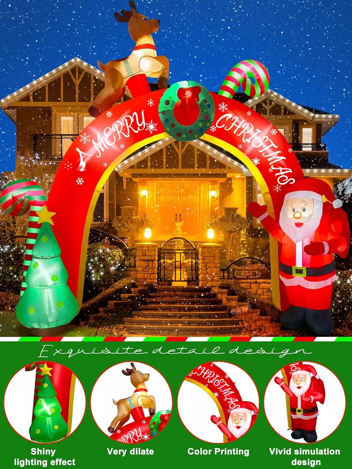 - Eye-Catching Design: Featuring Santa, a reindeer, and a Christmas tree, this 10FT inflatable archway brings the joy of Christmas to life.