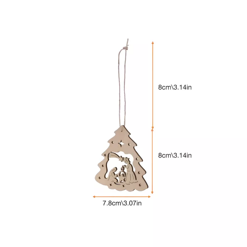 Bring the sacred story of Christmas to life with these exquisite Wooden Nativity Scene Pendants. Perfectly crafted to remind you of the birth of Jesus, these ornaments embody the true spirit of the holiday season. Featuring a stunning hollow-out design that depicts the Nativity scene and a graceful star, each pendant is a symbol of faith and joy. These ornaments are perfect for adorning your Christmas tree or enhancing your home décor with a meaningful touch.