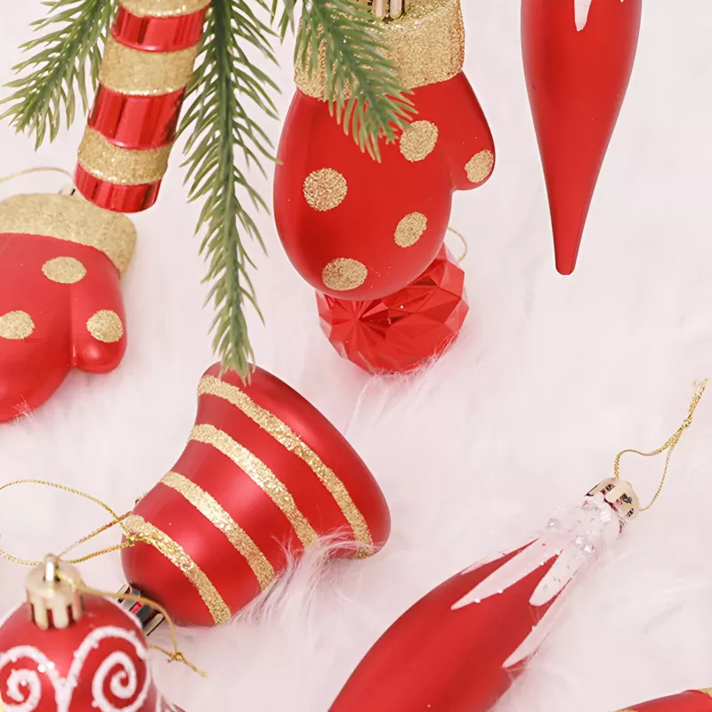 Carefully crafted to combine elegance and practicality, these ornaments are lightweight, shatterproof, and full of festive charm. Each piece showcases intricate details with a blend of glittery, glossy, and textured finishes. The set is thoughtfully designed to include a variety of shapes and sizes, ensuring every inch of your tree is adorned with style.