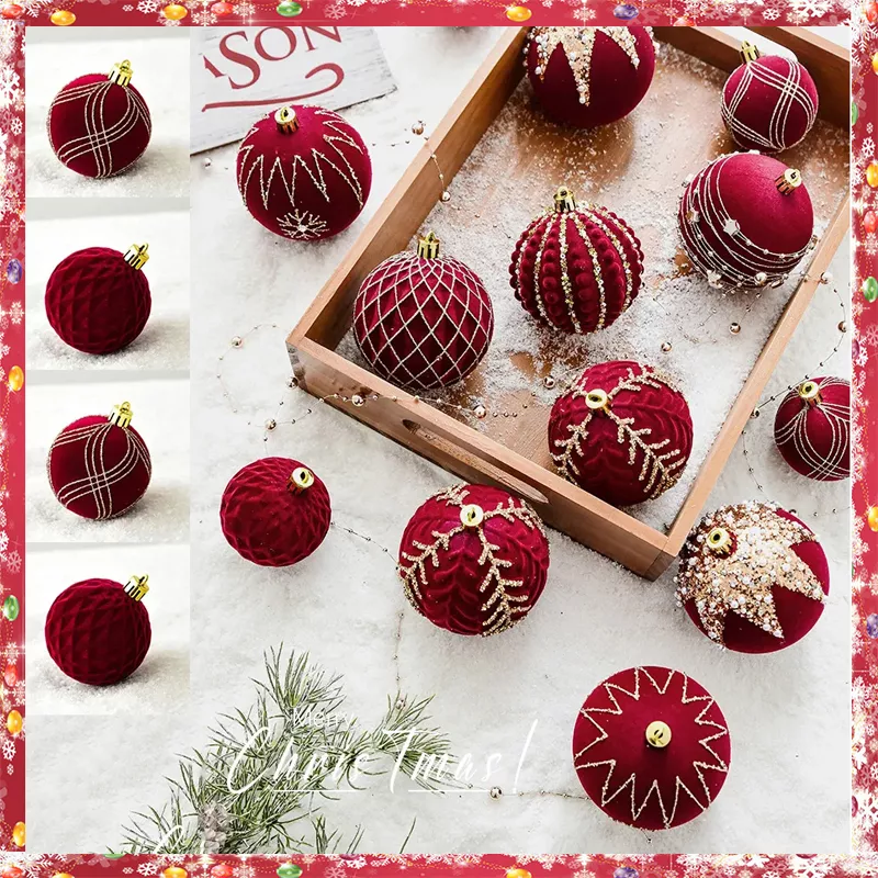 Add Festive Elegance with Red Flocking Painted Christmas Ornaments