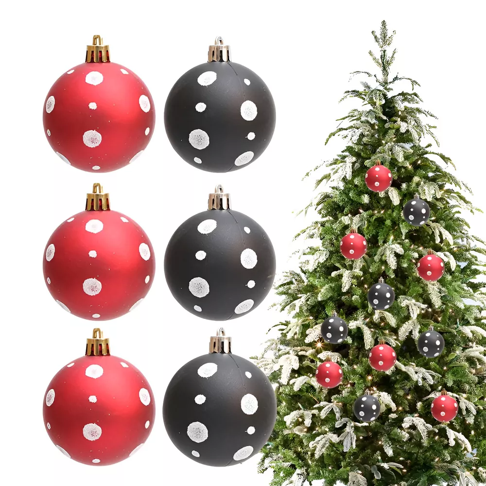 Transform your home into a festive wonderland with this set of 6 glittery Christmas Ball Ornaments. Designed with a harmonious blend of white, red, and black, these baubles encapsulate the essence of the holiday season—purity, warmth, and celebration. Perfectly sized at approximately 2.76 x 2.36 inches, these lightweight and durable ornaments are the ideal accents for Christmas trees, party decorations, and creative displays. Crafted from sturdy PVC with a dazzling glitter finish, they add a touch of sparkle to your holiday celebrations.