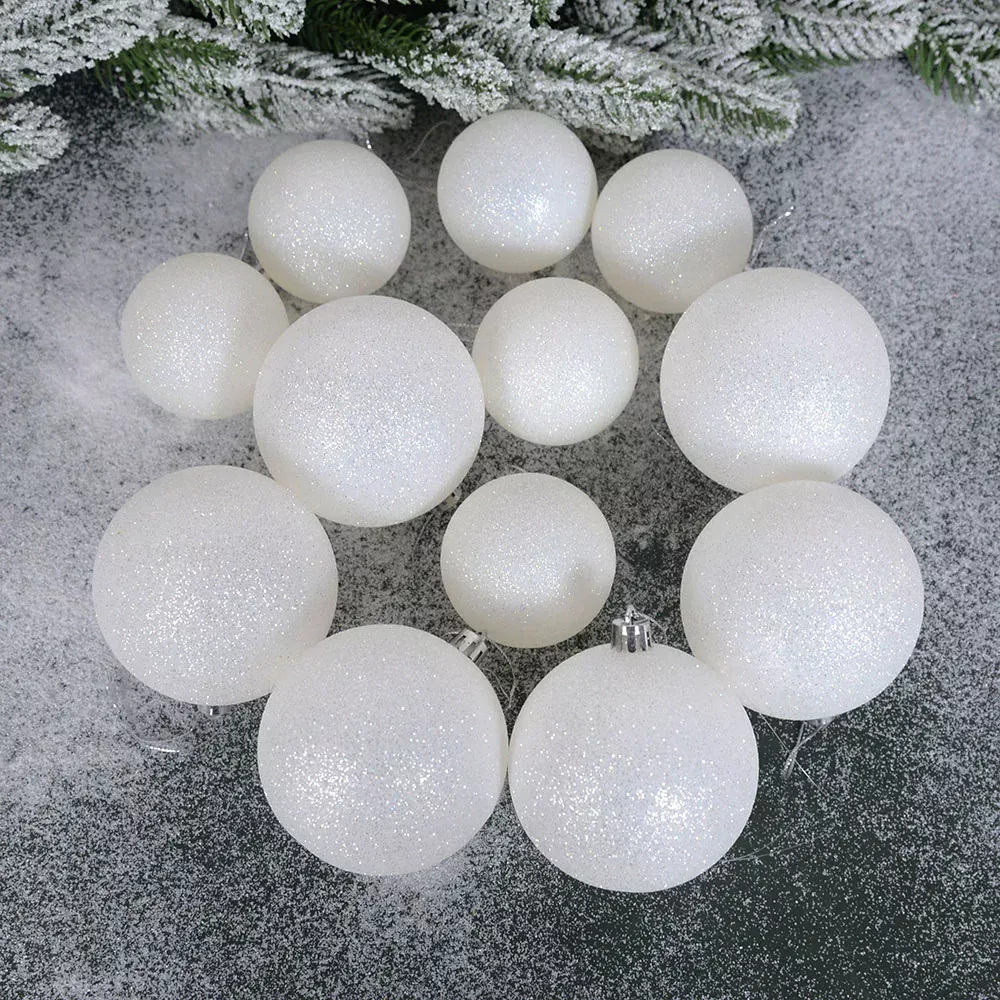 6pcs Glitter White Christmas Tree Ball Ornaments – Sparkling Xmas Hanging Pendants