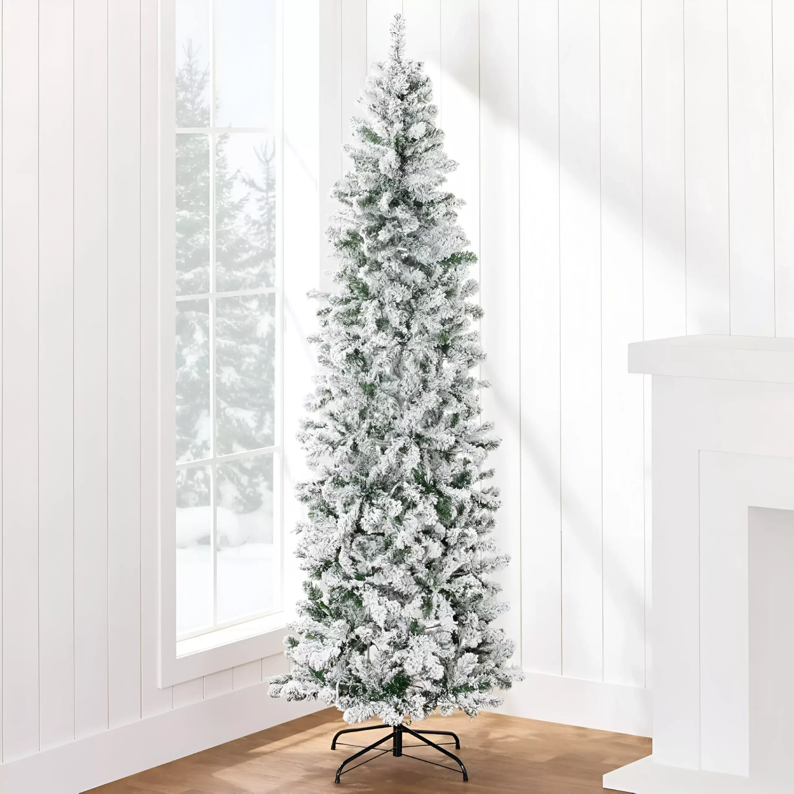 What makes this snow-flocked slim Christmas tree special is its combination of beauty and practicality. Its sleek, narrow profile is ideal for spaces of any size, while its realistic snowy look adds a touch of holiday magic to any setting. Whether used as the centerpiece of your decorations or a charming accent in a secondary space, this tree delivers elegance and charm in equal measure.