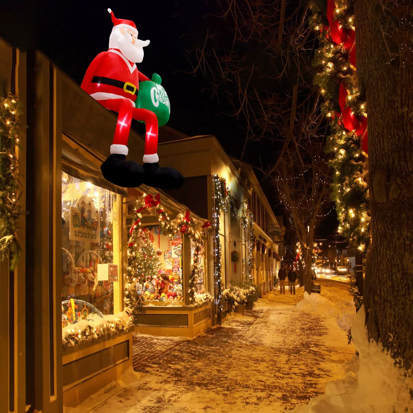 Make your yard the highlight of the neighborhood with this 8-foot Climbing Santa Christmas Inflatable! Crafted to add a festive and cheerful vibe to your holiday decorations, this enormous inflatable features Santa descending with his gift bag, lighting up the night with warm LED lights. Its vibrant colors and unique, slender-legged design create a magical holiday atmosphere that kids and adults alike will love. Set it up in your yard, on your roof, or even on a patio bench to welcome all with the season’s spirit!