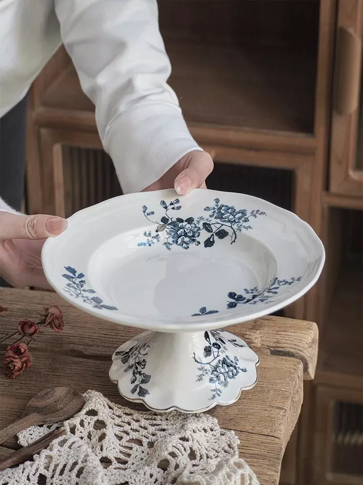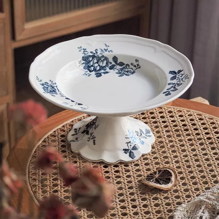 Elevate your tableware with this exquisite Blue and White High Footed Fruit Platter. Perfect for showcasing fresh fruits, desserts, or even as a decorative piece, this ceramic platter combines timeless elegance with modern practicality. Its high footed design and intricate floral patterns make it a stunning centerpiece for any table or kitchen counter.