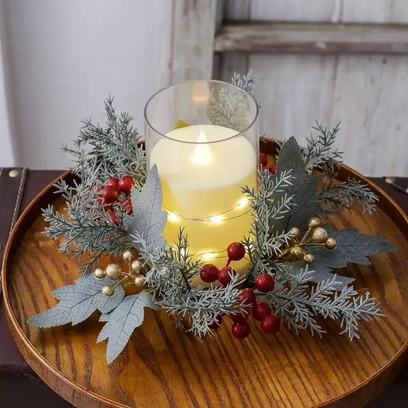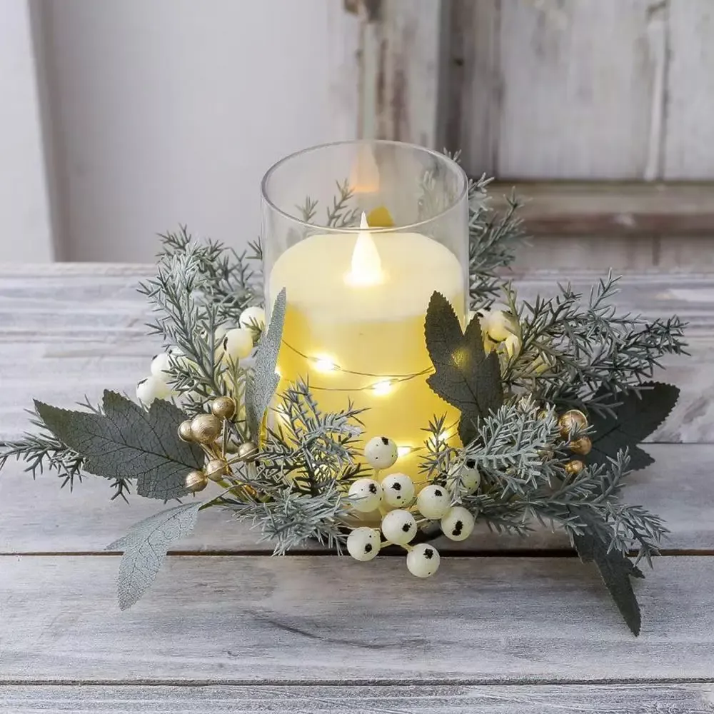 Bring the Festive Charm to Your Home with Our Christmas Berry & Leaf Candle Wreath