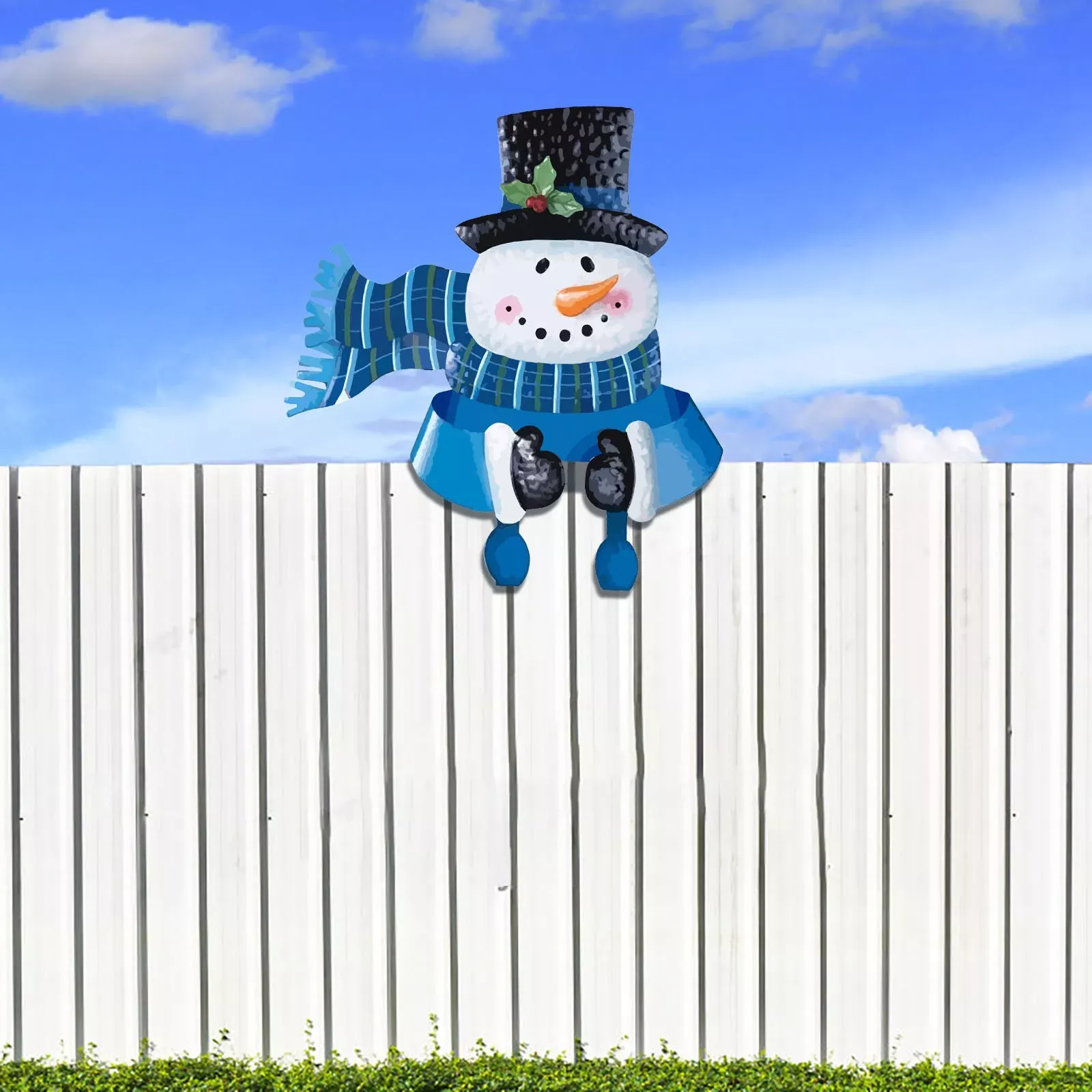 Bring Holiday Cheer to Your Outdoor Space with the Christmas Blue Snowman Fence Decoration
