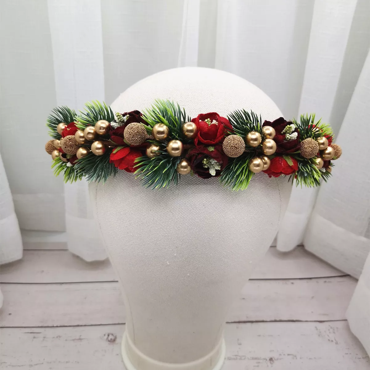 What makes this flower crown special is its ability to blend timeless beauty with festive charm. Whether you’re looking to elevate a casual holiday outfit or add a whimsical touch to a formal ensemble, this headband is the perfect choice. Its high-quality artificial flowers retain their beauty year after year, offering a sustainable alternative to real floral garlands.
