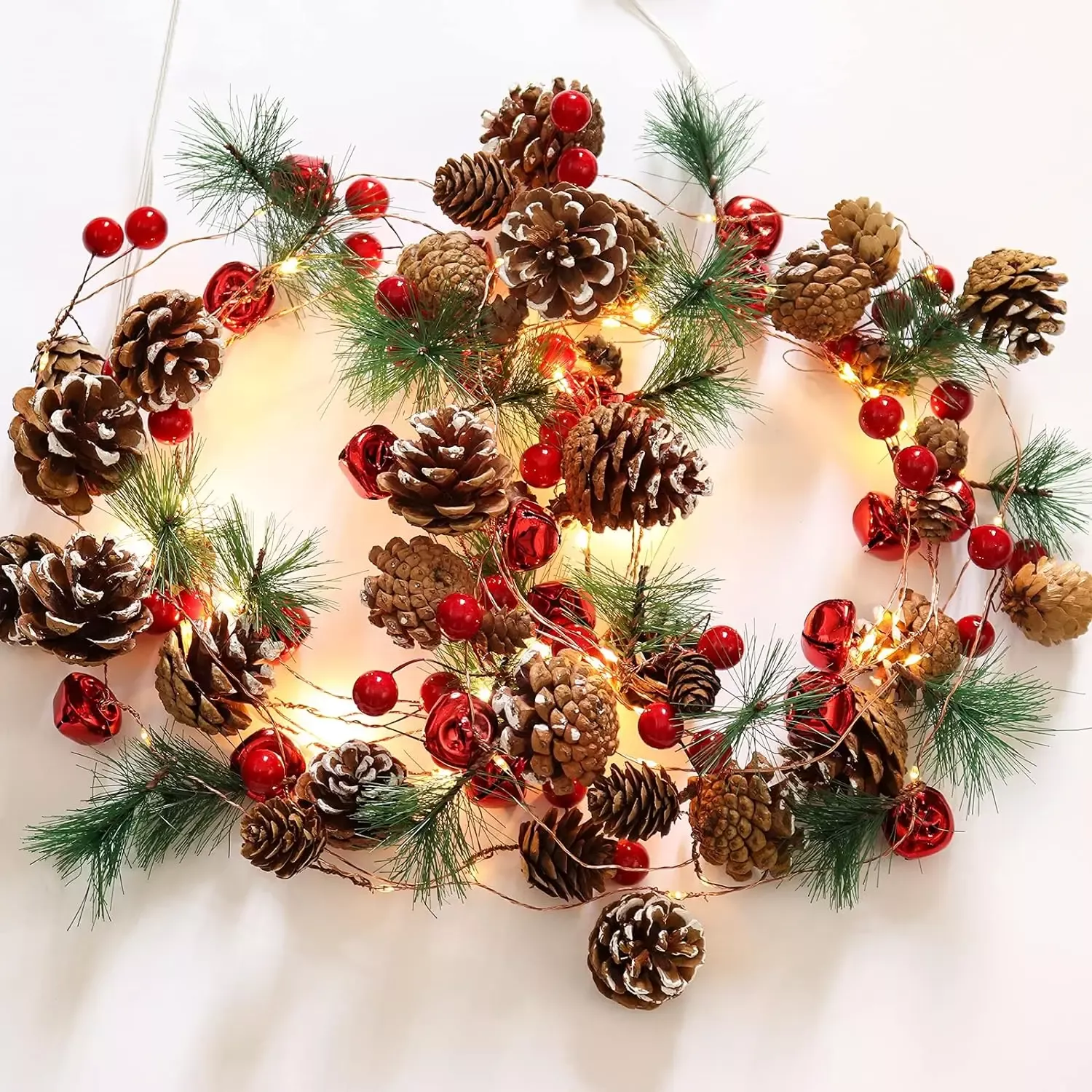 • Classic Decor Elements: Adorned with pine cones, red berries, bells, and pine needle sprigs for a traditional Christmas look