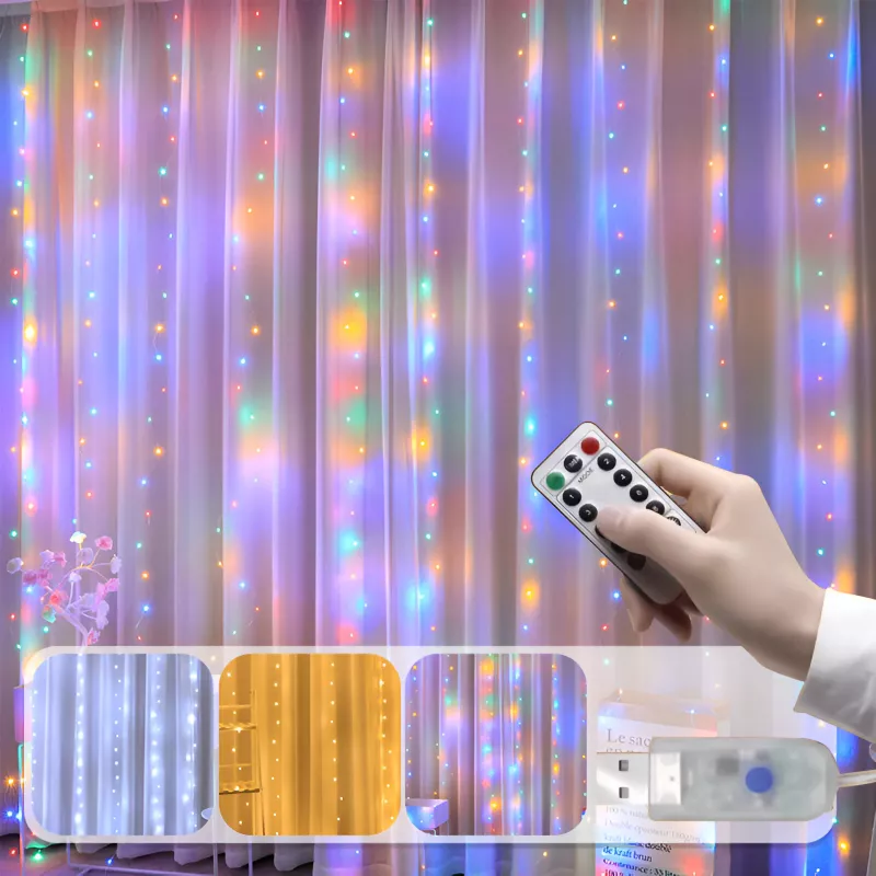 Make your holiday celebrations magical with these Christmas LED curtain string lights. Designed to bring warmth and sparkle to any setting, these lights feature 8 lighting modes, remote control functionality, and a USB power source for convenience. Perfect for enhancing your home, party, or event décor, they create a stunning backdrop for Christmas, New Year, or any festive occasion. Available in both white and multicolor options, these dimmable lights let you set the perfect ambiance for your holiday gatherings.