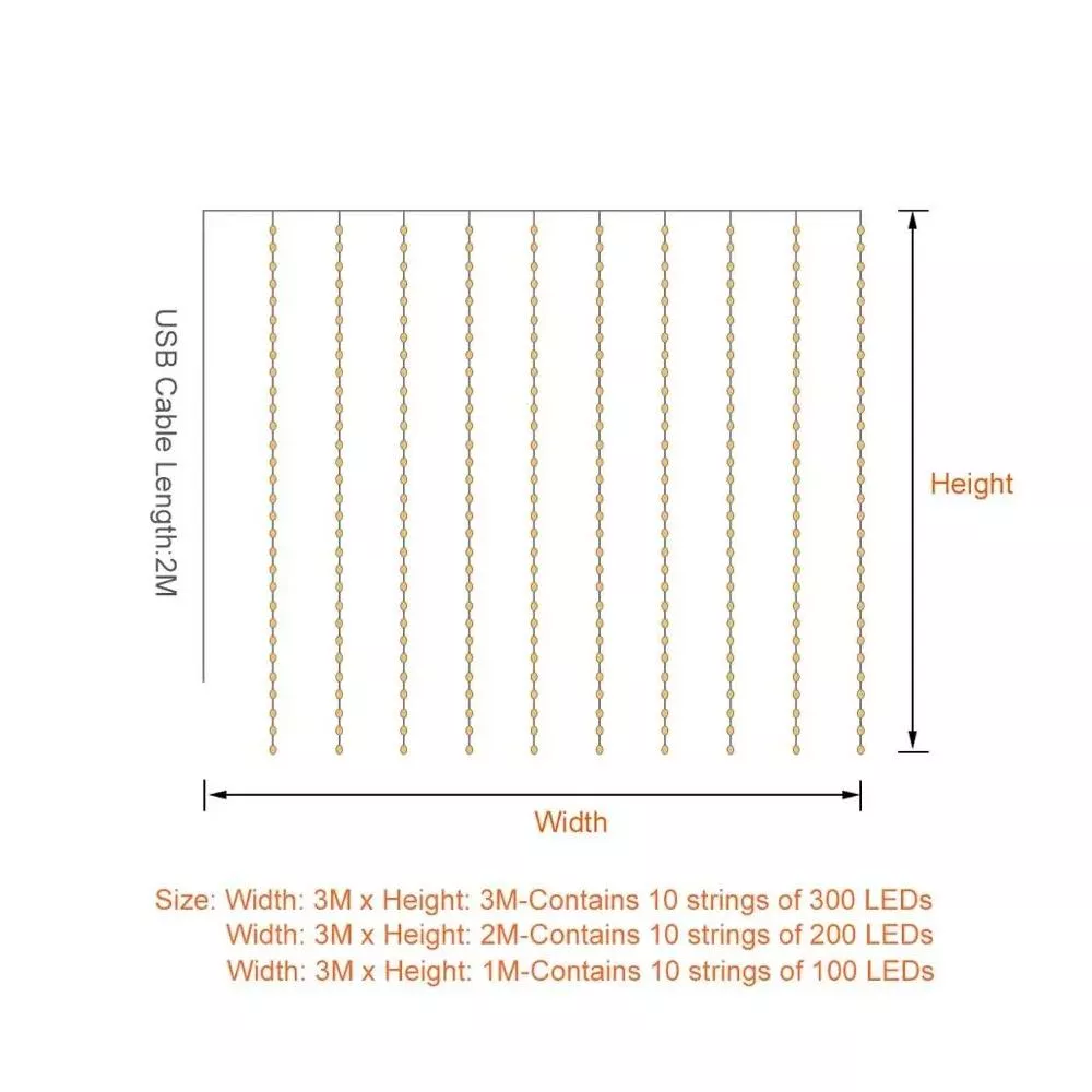 Transform your home into a magical winter wonderland with these Christmas LED Curtain String Lights. Perfect for adding a touch of festive warmth to any room, these curtain lights feature 8 lighting modes, creating an array of beautiful effects to set the holiday mood. Whether for Christmas, New Year, weddings, or special parties, these lights are designed to create memorable moments. Available in warm white, white, and multicolor, the lights are USB-powered for convenience and come with high-quality waterproof wiring, making them ideal for both indoor and sheltered outdoor use.