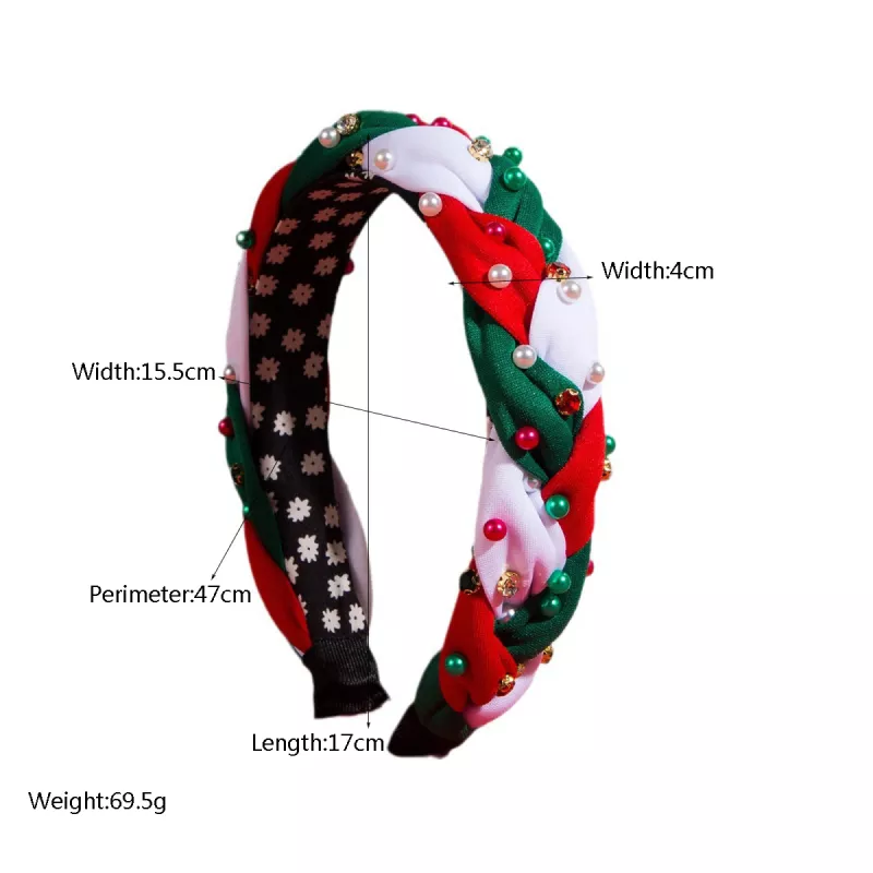 Crafted from high-quality polyester and plastic, this headband combines durability with comfort. The twist braid design adds a unique, fashion-forward touch, while the pearls and rhinestones provide just the right amount of festive sparkle. It’s designed to fit comfortably, making it suitable for wear all day or night, and its versatile style is perfect for any holiday-themed event. Whether you’re styling your hair for a formal affair or adding some glam to a casual look, this headband will always shine.