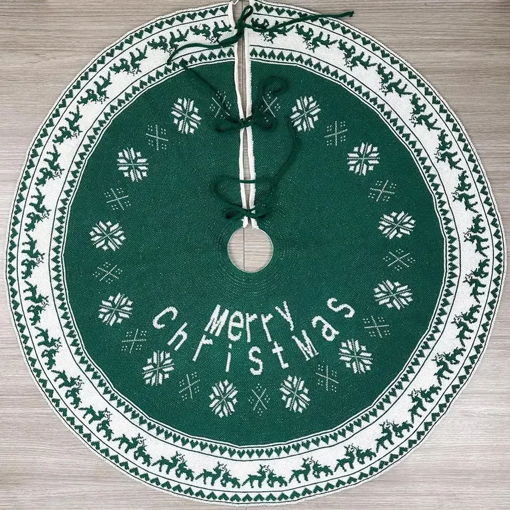 Enhance your holiday decor with our Christmas Tree Green Skirt featuring an elegant snowflake pattern. This beautifully knitted tree skirt is designed to add a cozy and festive vibe to any holiday tree, making it the perfect finishing touch for your seasonal setup. Whether you’re decorating for a family gathering, a school event, or a hotel lobby, this skirt brings a touch of rustic charm to your Christmas celebrations. Crafted with care, it’s sure to create a warm and cheerful atmosphere in any setting.