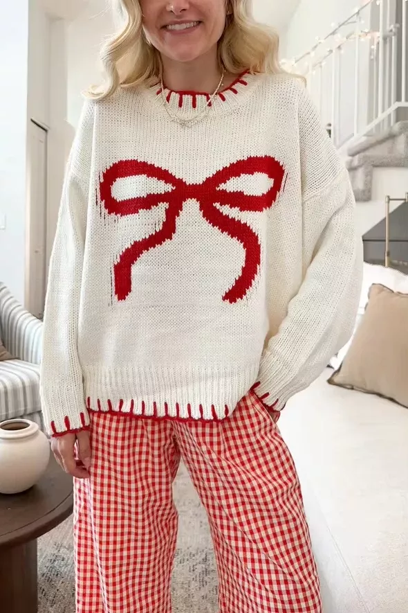 This knitted sweater is not just a piece of clothing—it’s an experience. Whether you’re celebrating the holidays or simply enjoying the crisp autumn air, the soft and cozy material ensures you feel as good as you look. The delicate bow decoration and butterfly print add just the right amount of fun to the classic sweater design, making it the perfect way to express your style during the colder months.