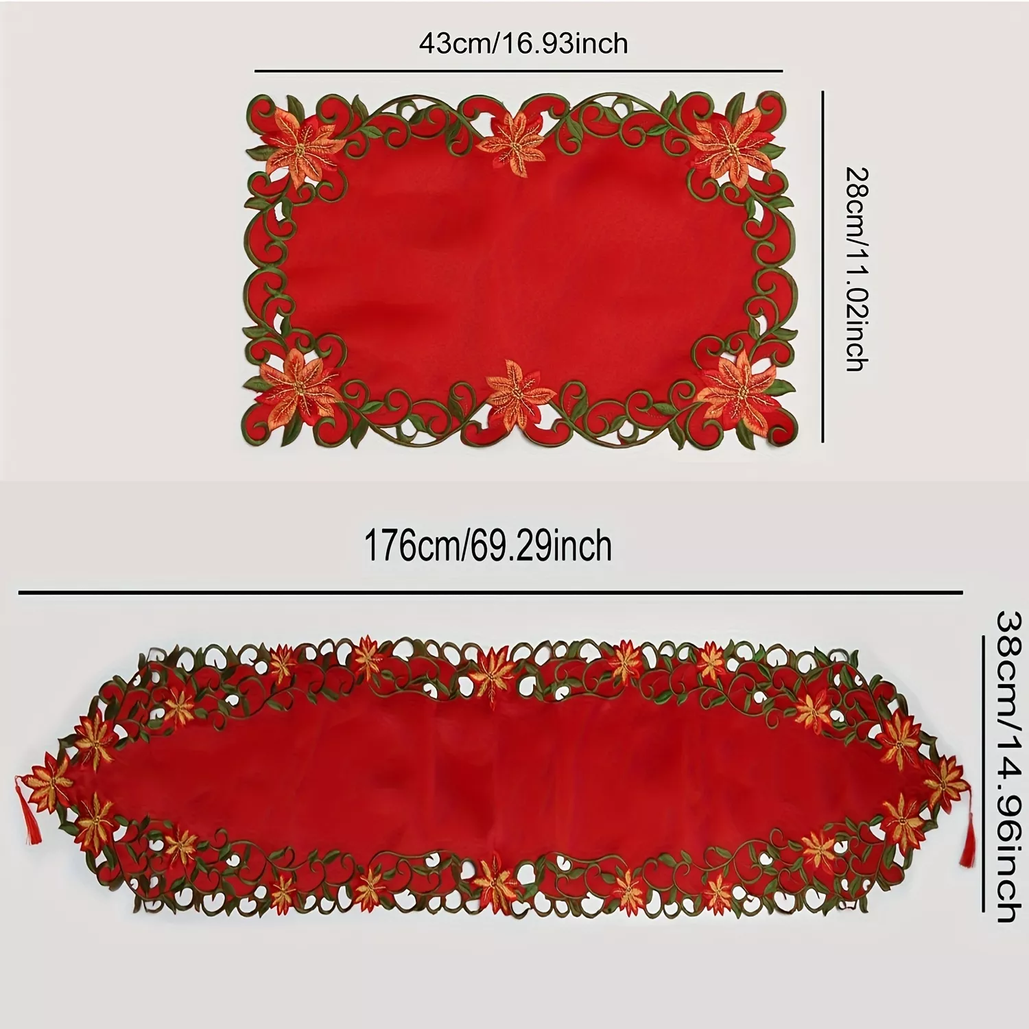 These embroidered Christmas table runners aren’t just decorative—they’re a perfect blend of beauty and functionality. The durable material ensures they stand up to repeated use while maintaining their vibrant design. The retro-inspired embroidery adds a timeless charm to your dining area, making these runners ideal for both modern and traditional table settings. Their versatile size options make them a fit for small tables or larger dining setups.