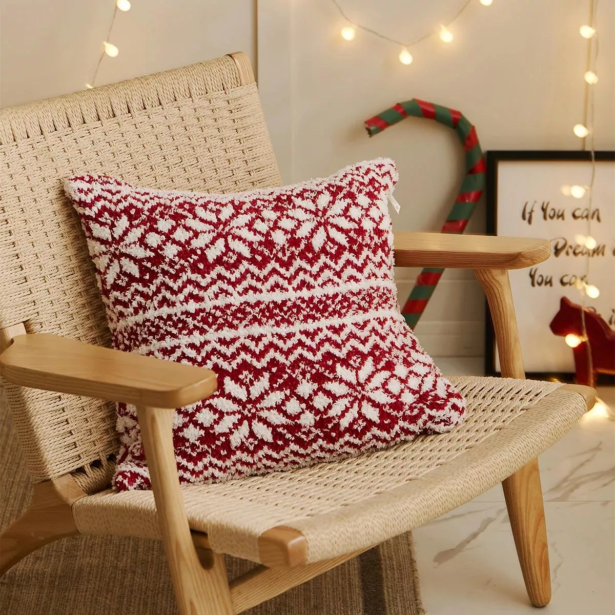 Transform your home into a cozy winter wonderland with our beautifully crafted Christmas Jacquard Cushion Cover. Designed with a scenic holiday-inspired pattern in festive red and beige, this 18×18-inch pillow cover captures the warmth and joy of the season, making it the perfect addition to your holiday decor. The chenille material adds a touch of luxury, while the soft jacquard knit ensures a high-quality, durable cover that looks just as good as it feels. Perfect for your couch, chair, or car, this cushion cover instantly elevates any space, inviting warmth, charm, and a little extra cheer.