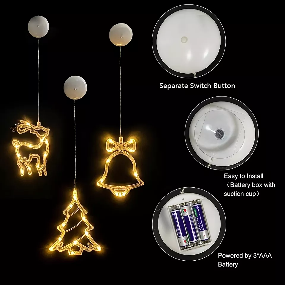 Brighten up your home this holiday season with our enchanting Christmas LED Light Ornaments! Featuring whimsical designs of snowflakes, Santa, and deer, these hanging decorations are perfect for creating a magical atmosphere as you celebrate Navidad and welcome the New Year. Ideal for windows, they will fill your space with warmth and cheer, making your home the envy of the neighborhood.