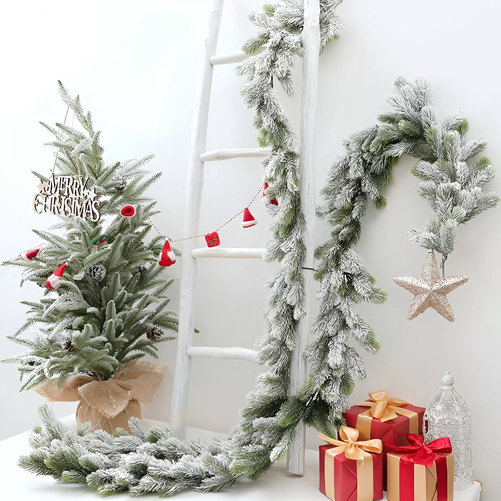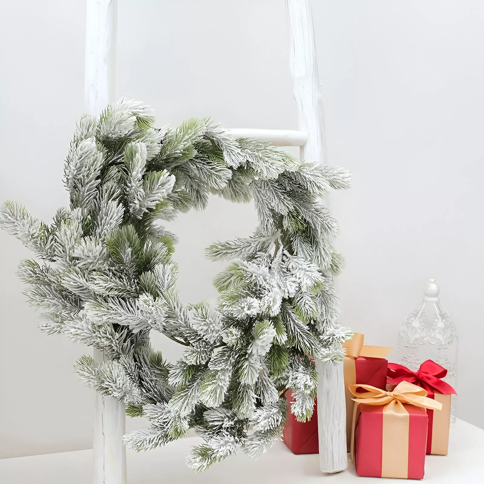 Add a touch of holiday magic to your home with our stunning Flocking Cedar Wreath Vine. This beautiful, artificial pine branch pendant is perfect for hanging on doors, walls, or even your favorite ladder for a rustic touch. Crafted from high-quality PE material, it offers a lifelike appearance that instantly elevates your Christmas decor.