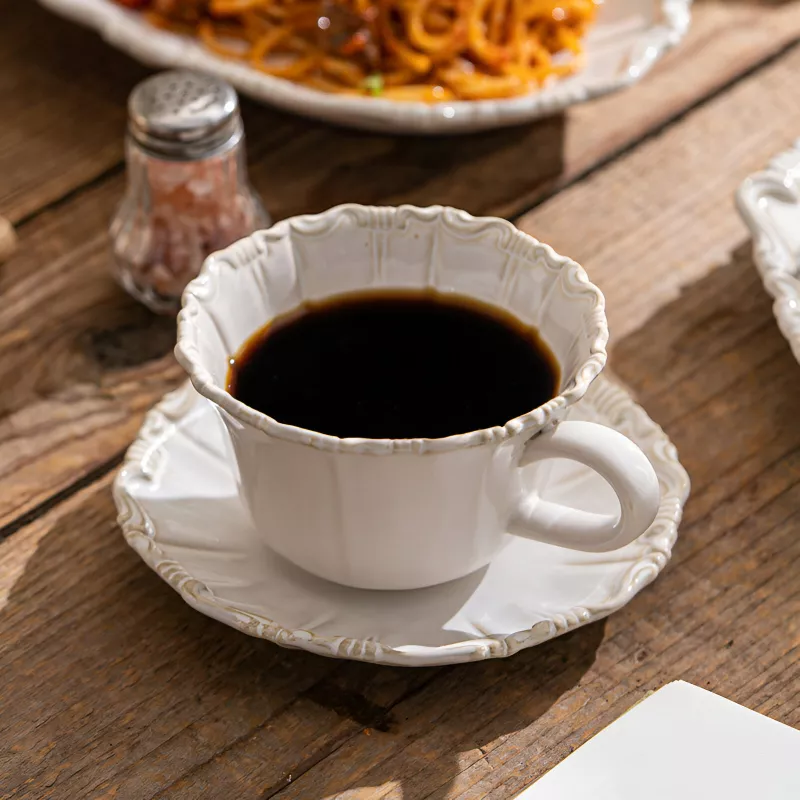 Every piece in this ceramic tableware set is thoughtfully designed with quality and sophistication in mind. The vintage charm of the relief patterns blends seamlessly with its sturdy ceramic construction, offering a refined touch to any table setting.
