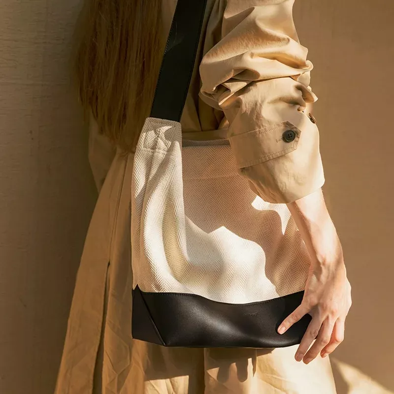 Genuine Cow Leather and Canvas Shoulder Bag for Women