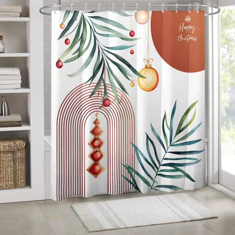 With dimensions of 71 x 71 inches (180 x 180 cm), this shower curtain offers excellent coverage, ensuring your bath area remains private and stylish. The unique geometric print combines red and green tones, creating a fresh and lively atmosphere that complements a variety of decor styles. Easy to install with the included 12 plastic hooks, this curtain is designed for hassle-free hanging and removal.