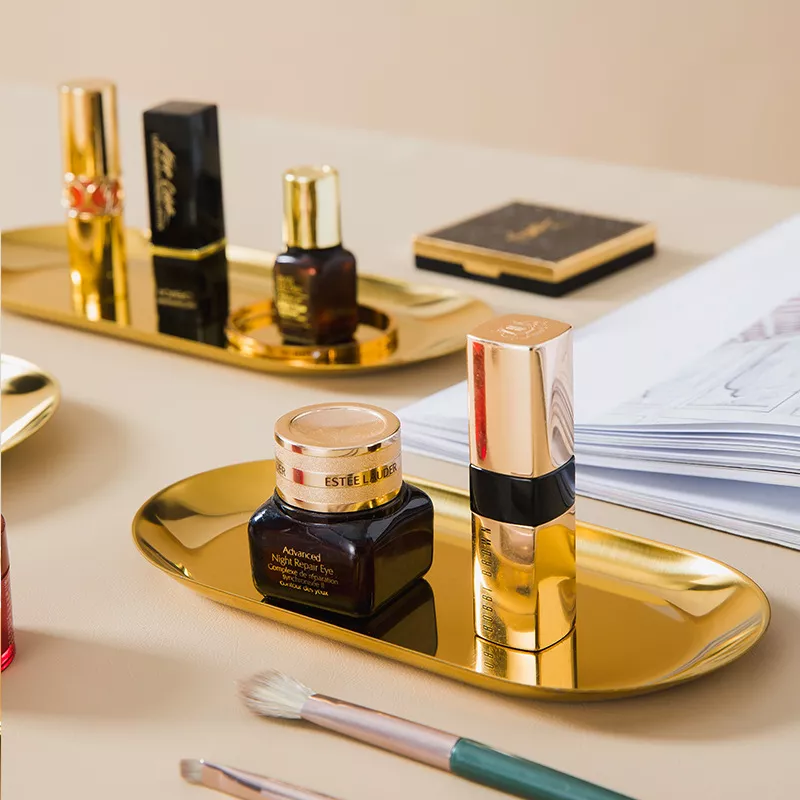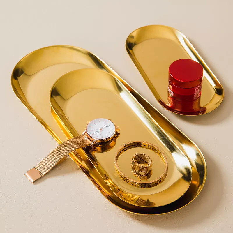 Elevate Your Space with the Gold Oval Stainless Steel Tray