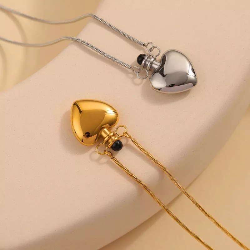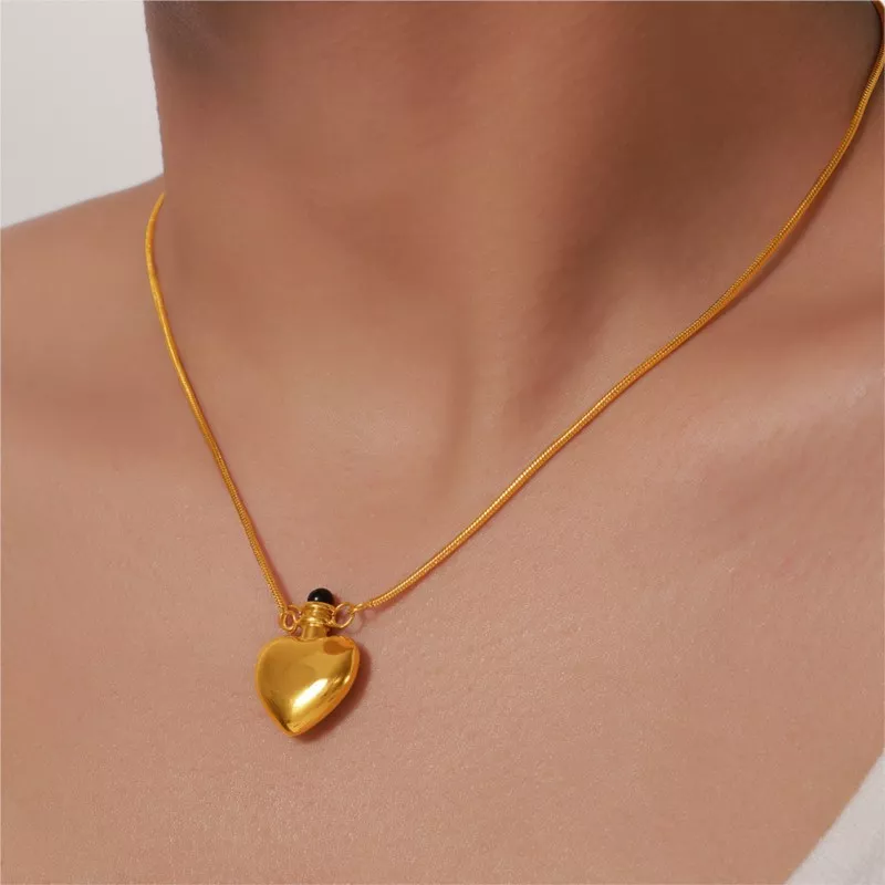 - Elegant Design: A heart-shaped bottle pendant that adds charm and uniqueness to your look.
