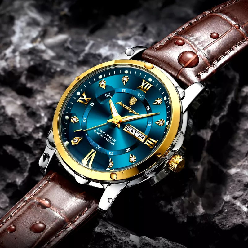 Designed for the modern man who values both style and functionality, this luxury wristwatch offers a perfect blend of classic design and advanced features. With its sleek leather strap, luminous hands, and precise quartz movement, it is a watch that complements any occasion. Whether you’re heading to a business meeting, hitting the gym, or enjoying a weekend adventure, this watch is the ideal companion for your busy lifestyle.