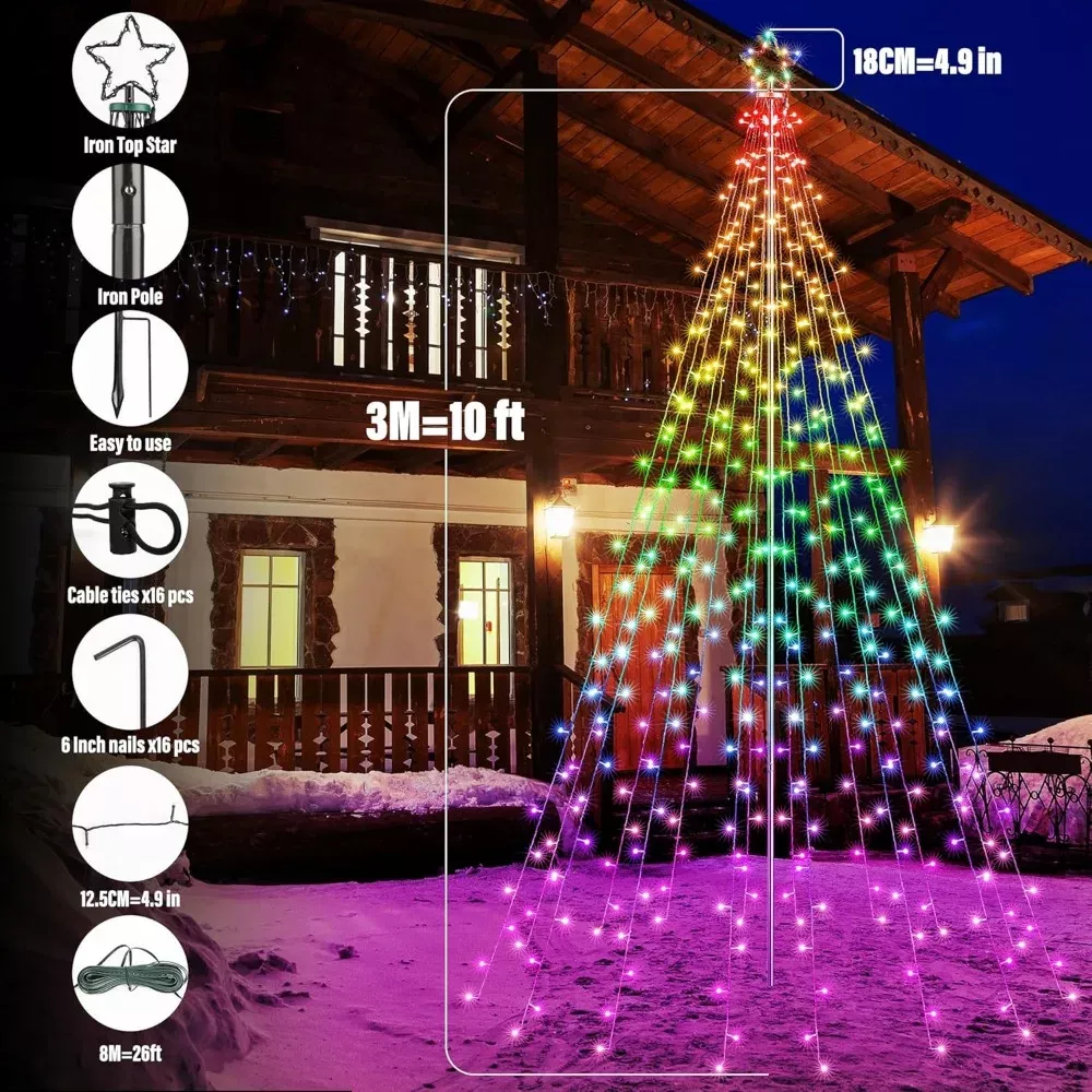 - Sturdy and Easy to Assemble: The 10 ft pole, made of durable metal tubes, is simple to set up and disassemble, while the lights are easy to wrap and store.