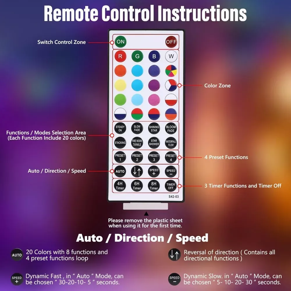 - Convenient Remote Control: Adjust brightness, speed, and lighting modes effortlessly with the included remote. Set the built-in timer to automatically turn the lights on and off.