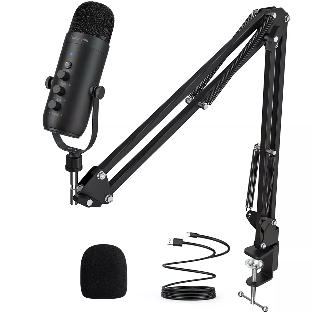 Unlock your potential as a podcaster, Twitch streamer, or content creator with this professional USB streaming microphone kit. Designed to deliver studio-quality sound, this kit includes a high-performance cardioid condenser microphone, a versatile boom arm, and all the accessories you need for top-notch audio. Whether you’re recording a podcast, gaming, or streaming on YouTube, this microphone setup is perfect for producing clear, professional-grade sound.