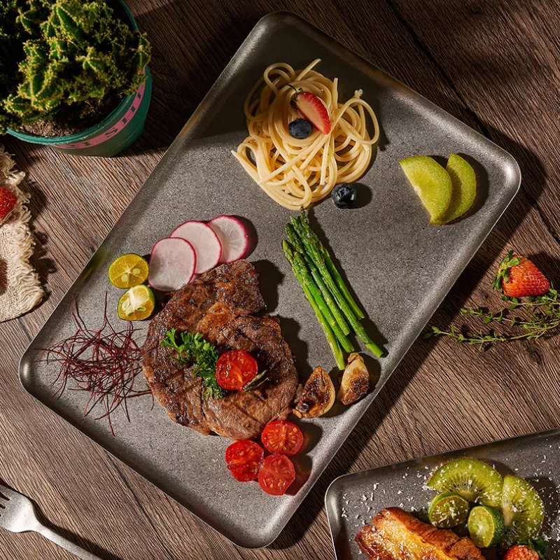 Add a touch of vintage charm to your dining or restaurant table with this retro antique square steak tray. Crafted from premium 304 stainless steel, this tray combines durability with a sleek and timeless aesthetic. Its rectangular design offers a sophisticated way to serve steaks, desserts, or barbecue, making it the perfect centerpiece for any meal. Whether you’re entertaining guests or enhancing the ambiance of your restaurant, this tray exudes a sense of creativity and modern elegance.