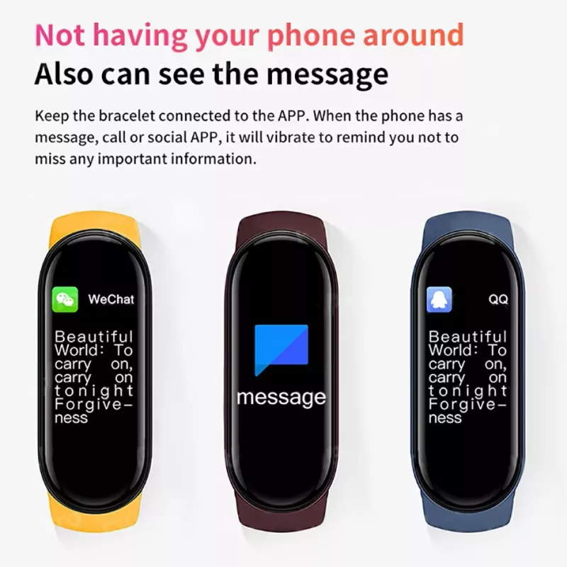 Use this fitness tracker throughout your day to stay on top of your health metrics. It’s perfect for workouts, workdays, or relaxation at home. Whether you’re tracking steps, monitoring your sleep, or managing calls and messages, the M7 is a reliable and stylish companion.