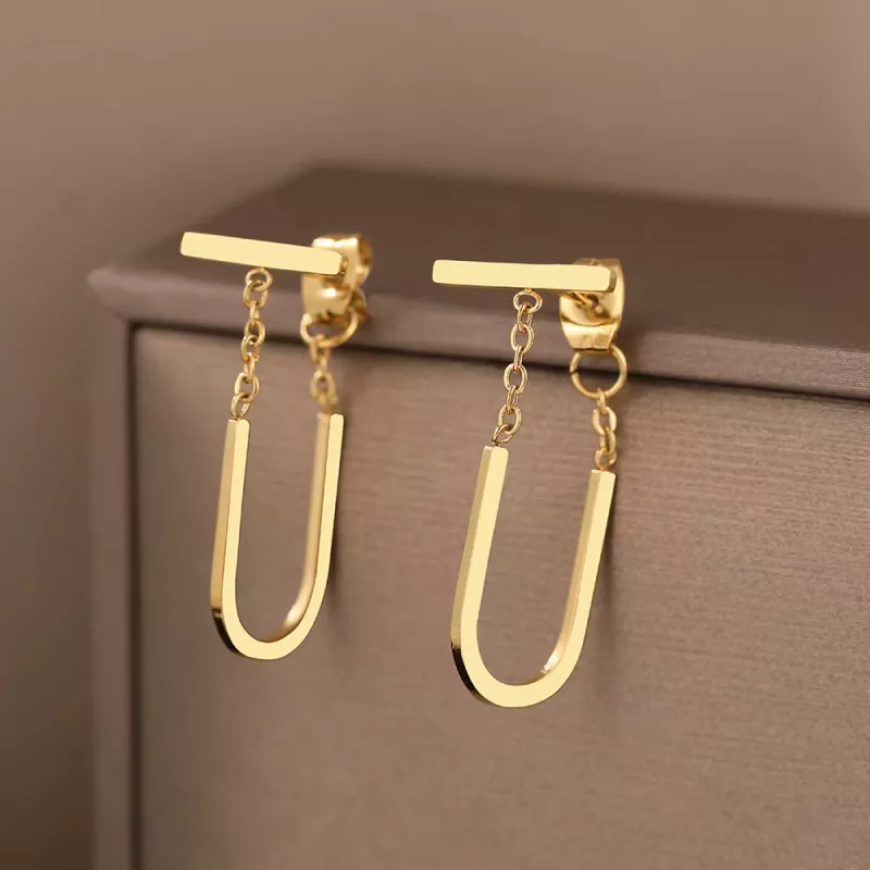 Embrace a unique blend of gothic and modern style with these Stainless Steel Simple Geometric Stick Earrings. Featuring a sleek U-shaped tassel pendant design, these earrings are perfect for women who want to make a bold statement. Crafted from durable stainless steel, they are hypoallergenic, water-resistant, and designed to maintain their shine for years. Whether you’re attending a party, wedding, or simply elevating your everyday look, these earrings are the ultimate accessory for effortless style.