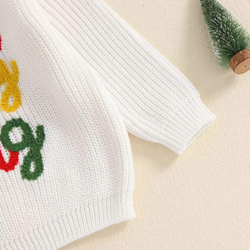 - Festive Letter Embroidery: The embroidered letters give this sweater a cheerful, holiday-ready vibe, making it the perfect outfit for Christmas celebrations and family photos.
