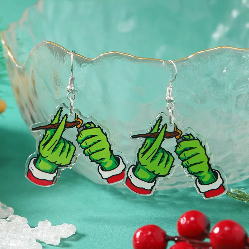 Get ready to dazzle this festive season with these trendy acrylic Christmas earrings. Designed for women who love to celebrate the holidays in style, these earrings feature playful and festive pendants such as green hands, black kittens, boots, and glittering sequins. The combination of bold colors and charming designs makes them the perfect accessory for Christmas parties, New Year celebrations, or any holiday event.