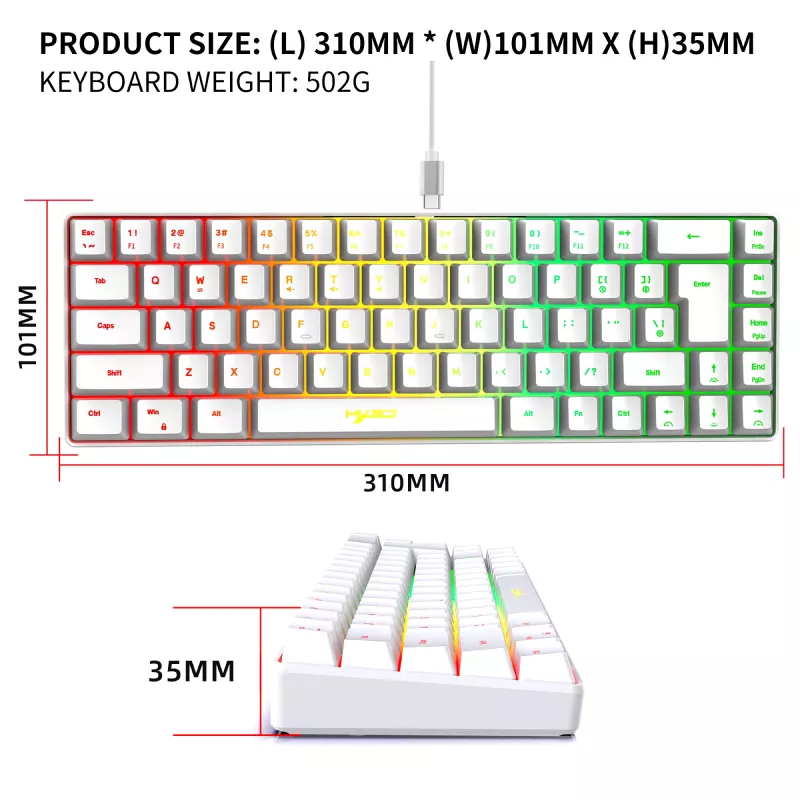 • Portable & Practical: The keyboard is compact with 68 keys, making it ideal for limited desk spaces or easy transport between workstations or gaming events.