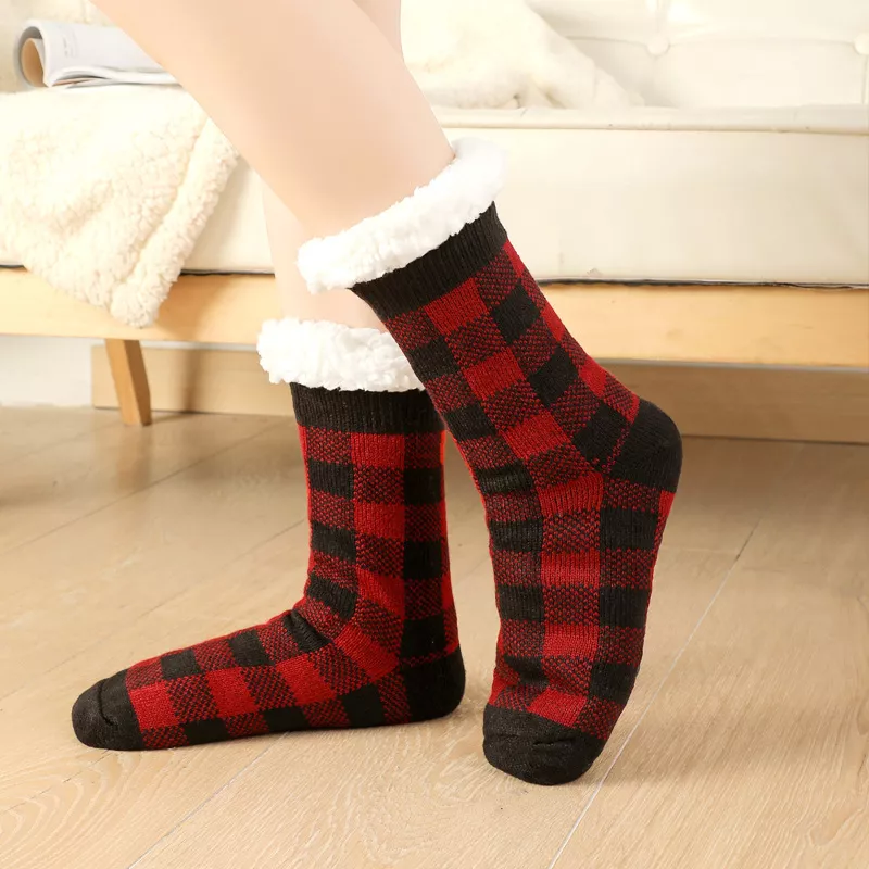 These thermal socks are carefully knitted from a high-quality blend of cotton, cashmere, and velvet, ensuring maximum comfort and warmth. The plaid design adds a touch of charm, making them as stylish as they are cozy. With their mid-tube height and soft fabric, these socks fit snugly to keep your feet protected from the chill.