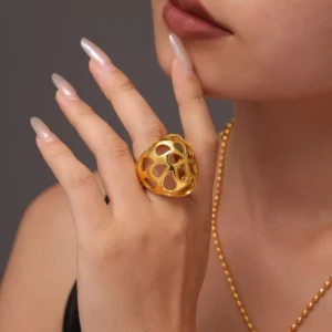 18k Gold Plated Hollowed Stainless Steel Cocktail Ring for Women